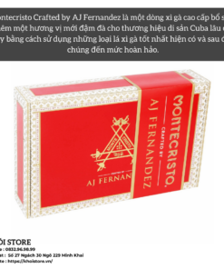 Montecristo Crafted by AJ Fernandez là một dòng xì gà cao cấp bổ sung thêm một hương vị mới đậm đà cho thương hiệu di sản Cuba lâu đời này bằng cách sử dụng những loại lá xì gà tốt nhất hiện có và sau đó ủ chúng đến mức hoàn hảo. Toro là một điếu xì gà có độ nặng mạnh mẽ với kích thước 6 x ring 50, viên đá quý được chế tác hoàn hảo này tràn ngập những nốt hương thoang thoảng