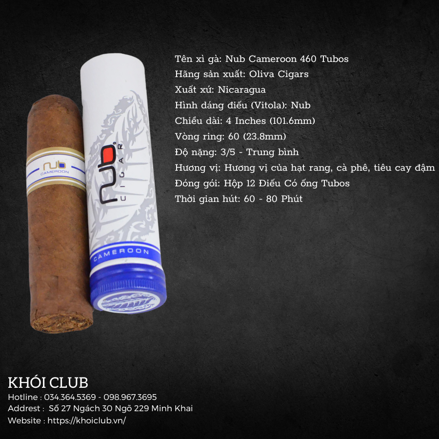 Thông tin chi tiết Xì Gà Nub Cameroon 460 Tubos chính hãng:
