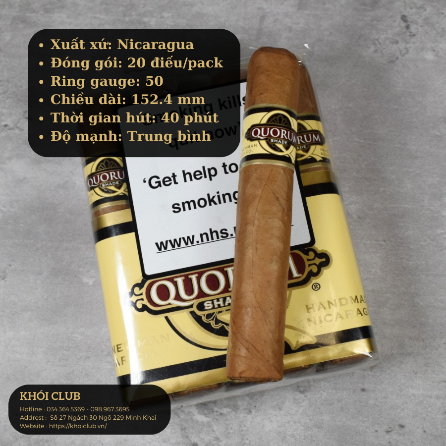 Từ huyền thoại JC Newman, tất cả các dòng xì gà được sản xuất có nguồn từ Nicaragua này được đóng gói chắc chắn và có sẵn trong cả hai loại vỏ bọc của Sun Grown của cổ điển, mang lại hương vị hạt dẻ vị phong phú và một loạt những sản phẩm hương vị nhẹ. Chúng ta có thể cảm nhận được những hương vị mới mẻ rất cân bằng và mịn mượt trong hương vị đem đến cho chúng ta những trải nghiệm tuyệt hảo nhất khi thưởng thức. Tất cả hai dòng xì gà Quorum này đều cung cấp cho chúng ta một làn khói thơm dày, đốt cháy cực kì chậm và giữ cho nó phức tạp ngay đến hơi cuối cùng. Các gói được bán theo gói 20 chiếc, xì gà Quorum sẽ không chỉ thu hút bạn với giá thành hấp dẫn, mà còn đem đến cho bạn những hương vị tuyệt hảo mà khiến bạn nhận ra đây là một trong những dòng xì gà ngon tuyệt.