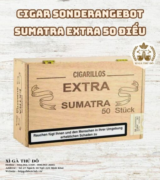 Xì Gà Sonderangebot Sumatra Extra Cigarillos là sự lựa chọn tuyệt vời cho những ai muốn trải nghiệm hương vị Sumatra tinh tế trong một điếu xì gà mini nhỏ gọn. Hãy nhanh tay sở hữu hộp 50 điếu để tận hưởng những giây phút thư giãn tuyệt vời!