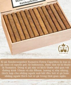 Bạn đang tìm kiếm một loại xì gà mini với hương vị nhẹ nhàng, thích hợp cho những giây phút thư giãn ngắn ngủi? Xì Gà Sonderangebot Sumatra Extra Cigarillos chính là lựa chọn hoàn hảo dành cho bạn. Được sản xuất tại Đức từ những lá xì gà Sumatra chất lượng cao, dòng xì gà này mang đến trải nghiệm hút thuốc lá tinh tế và đầy lôi cuốn.