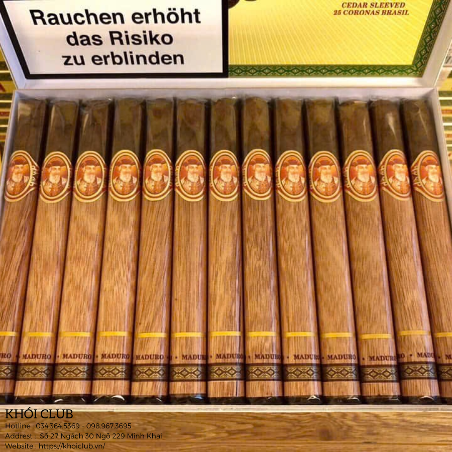 Đóng gói: Được đóng gói trong hộp 25 điếu, sản phẩm này thường được bảo quản cẩn thận để duy trì chất lượng xì gà. Hộp thường được thiết kế sang trọng và chắc chắn, là một món quà lý tưởng cho những người yêu thích xì gà hoặc một lựa chọn hoàn hảo để tự thưởng cho bản thân.