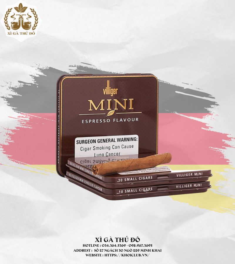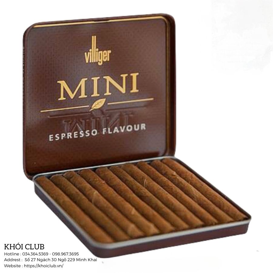 Villiger Mini Espresso Flavour là loai cigar nhẹ, lá quấn ngoài tự nhiên từ Ecuador với vị café, socola đen kín đáo và dễ chịu. Hỗn hợp thuốc lá Virginia, African Burley và Cavendish tạo ra các vị lá thuốc tự nhiên và hương thơm đậm đà khó quên.